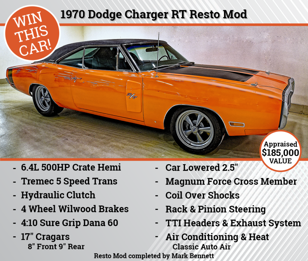 Brad Wall and a team of Saskatchewan car enthusiasts and philanthropists partnered to build a custom car and decided to donate it to charity. Knight Automotive Group, with the help of Rawlco Radio, RBC, Flying W Consulting Inc., Great Western Brewing, and Broda Group, completed the 1970 Dodge Charger RT resto mod.