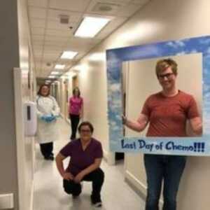 Trenna, with her care team at the Saskatoon Cancer Centre, on her last day of treatment.